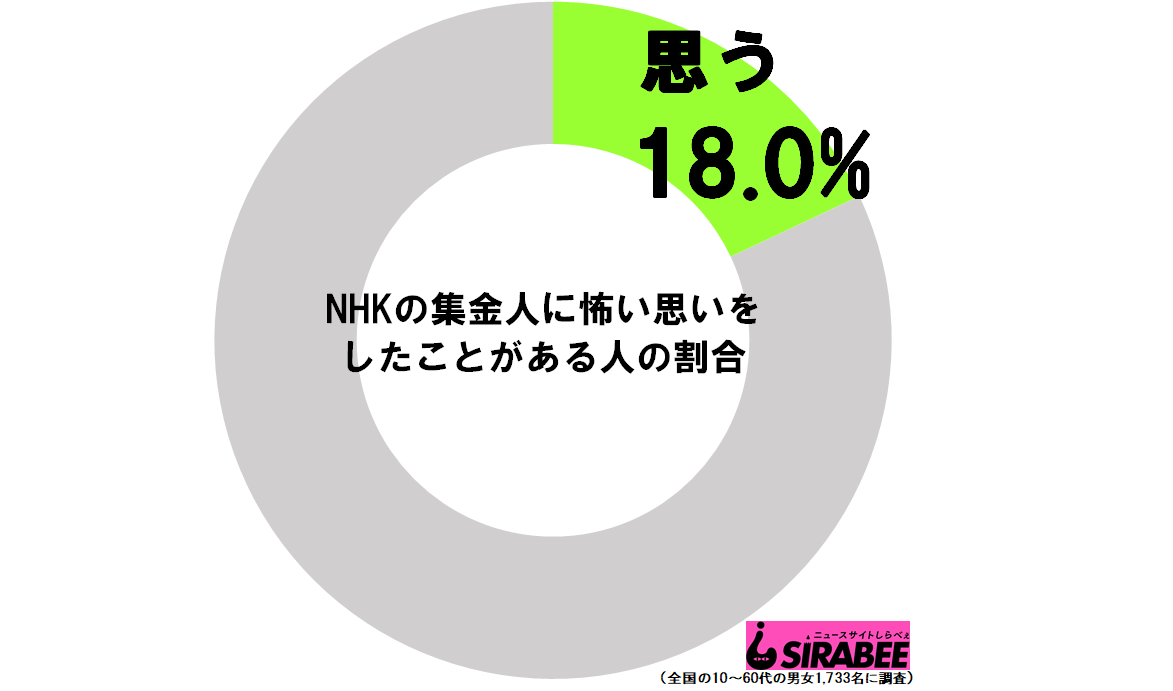 しらべぇ編集部が全国の10~60代の男女1,733名に実施した調査では、18.0%が「集金に怖い思いをしたことがある」と回答。